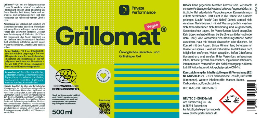 Erleben Sie die mühelose Reinigungskraft von GRILLOMAT® und schützen Sie gleichzeitig die Umwelt. Ein sauberes Zuhause muss nicht auf Kosten unserer Erde gehen. Testen Sie jetzt unser ökologisches Backofen- und Grillreiniger-Gel und genießen Sie strahlende Sauberkeit ohne Kompromisse.
