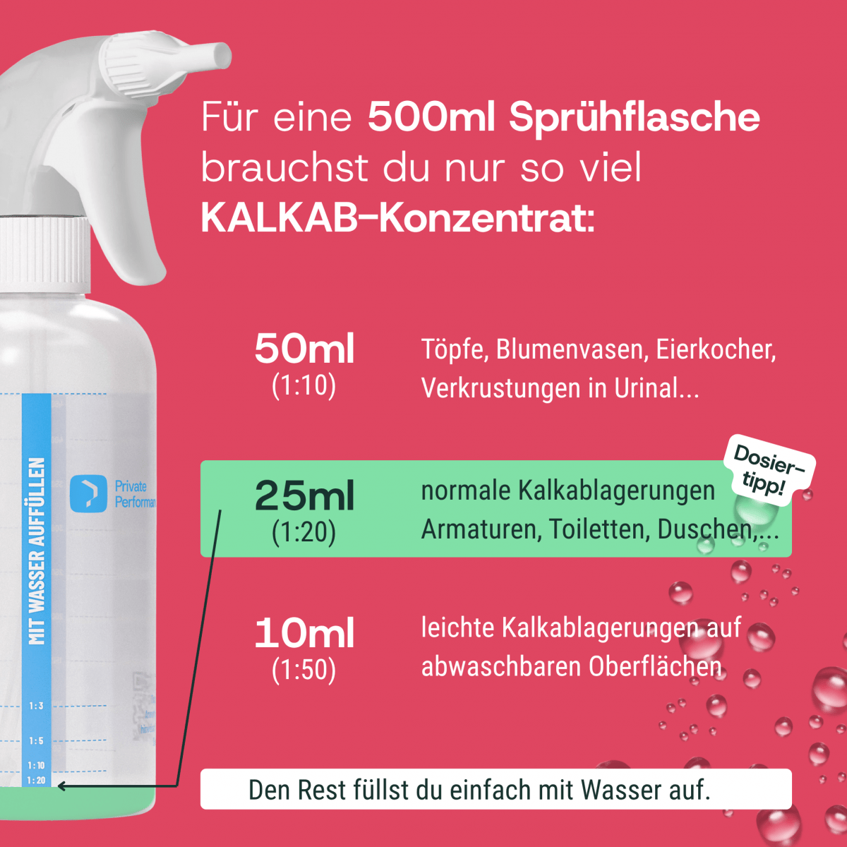 Kalkab ist besonders ergiebig, materialschonend und auf Basis natürlicher Milchsäure hergestellt . Er bietet Ihnen nicht nur eine effektive Reinigungslösung, sondern auch ein Hochkonzentrat, das Ihr Bad sauber hält und gleichzeitig die Umwelt schützt.