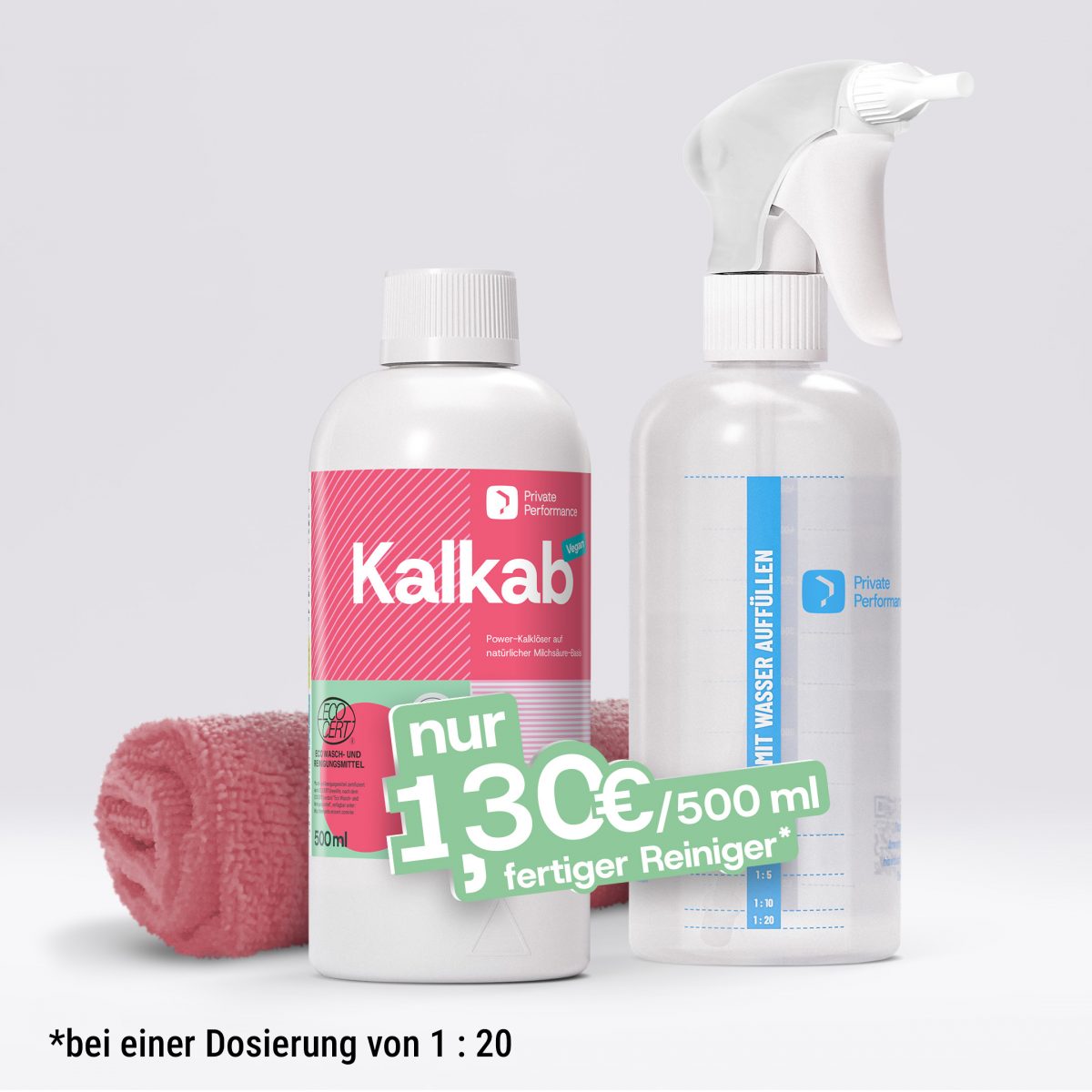 Gratis Dosierflasche, Sprühkopf und Mikrofasertuch inklusive – solange der Vorrat reicht!